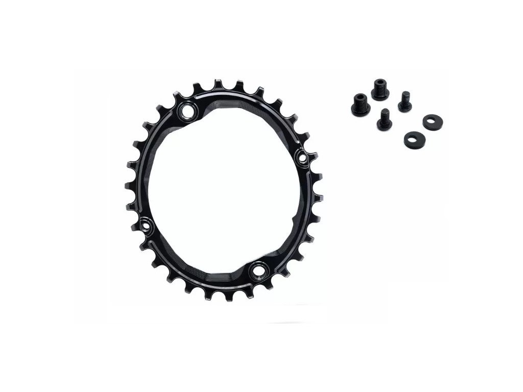 Kompatibilný s všetko s 4x 104 BCD: Shimano XT / Zee / Deore / SLX / XTR, Race Face Sixc, RF Ride, RF Chester, RF Respond, FSA, E13. 9, 10, 11 and 12spd Eagle.