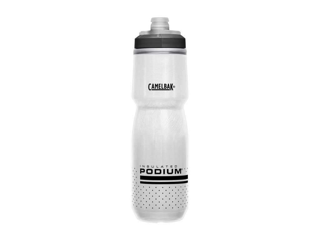 Izolované fľaše CamelBak Podium Chill udržia vďaka dvojitej stene teplotu nápoja 2x dlhšie v porovnaní s normálnou fľašou. Sú vyrobené z BPA, BPS a BPF-free polypropylénu, ktorý zaisťuje vernú chuť nápoja bez plastovej pachuti. Vďaka patentovanému samouzatváraciemu náustku Jet Valve z medicínskeho silikónu voda z fľaše nekvapká na rám. Navyše je vybavená úplným otočným uzáverom (lock-outom) na prepravu plných fliaš v taške alebo v aute.