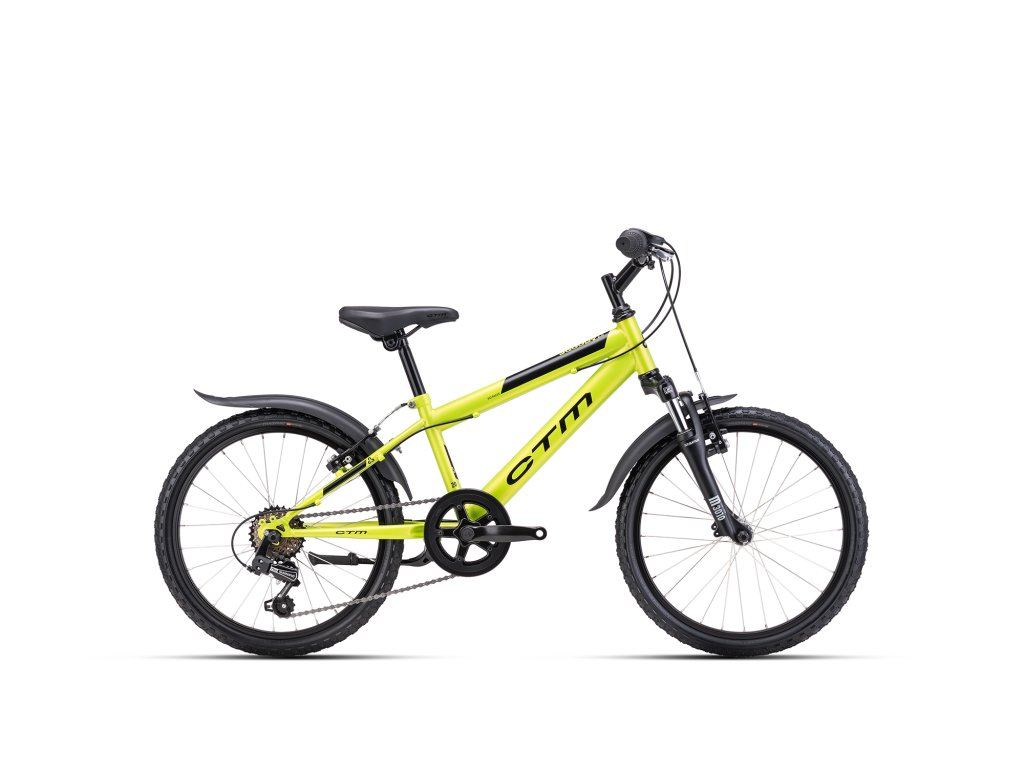 CTM Scooby 2.0 je detský bicykel s 20-palcovými kolesami pre deti s výškou postavy od 115 do 130 cm. Ponúka odolný oceľový rám s pevnou vidlicou, 6 prevodov s otočným radením a ráfikové brzdy. Plastové blatníčky a stojan sú nielen praktickou súčasťou bicykla, ale podčiarkujú aj jeho celkový športový dizajn.
