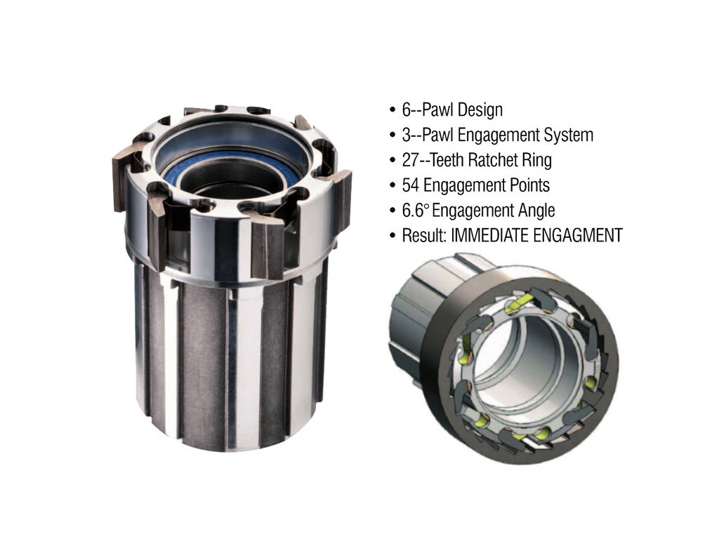 Duralový orech je vybavený šiestimi západkami pre okamžitý záber (uhol záberu je 6,6°, v zábere sú vždy 3 západky), kompatibilný je s kazetami Shimano 9/10/11Speed alebo Sram 9/10Speed. (možnosť dodania aj s orechom XD pre 11Speed Sram kazety)