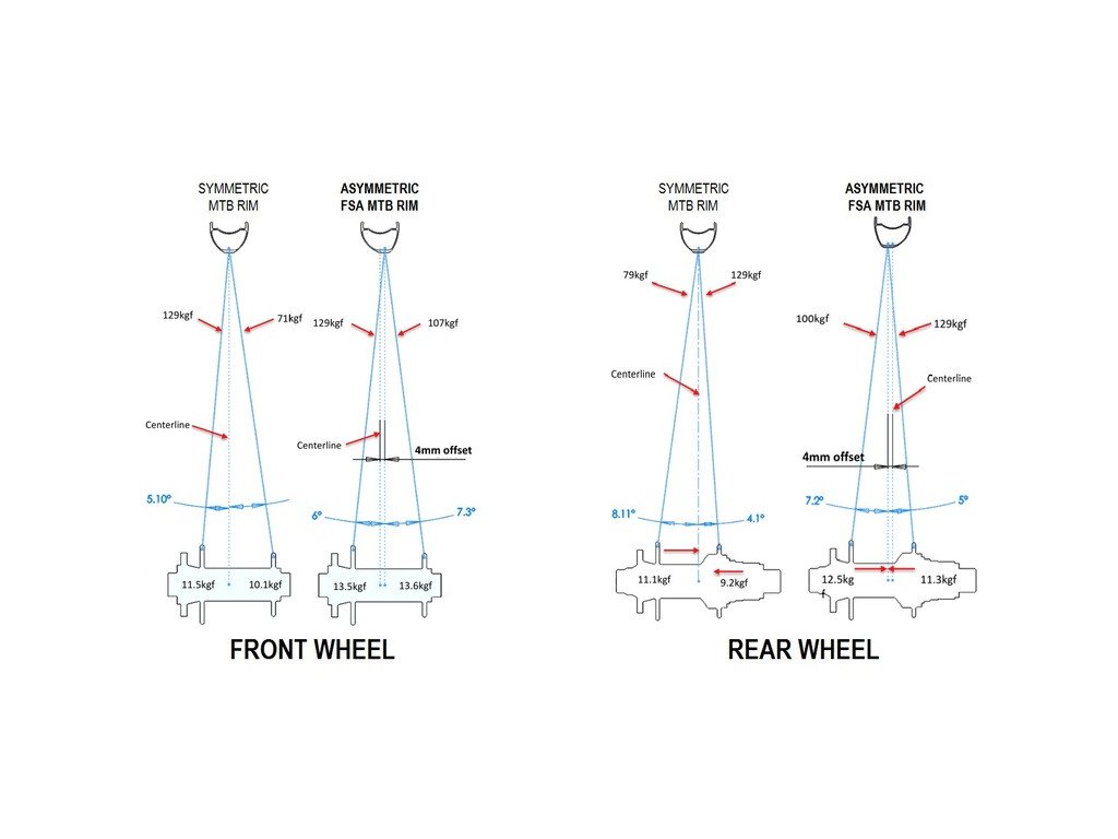Výhodou kolies s asymetrickým profilom ráfikov sú takmer rovnaké dĺžky drôtov a taktiež veľmi podobné napnutie drôtov na obidvoch stranách.
