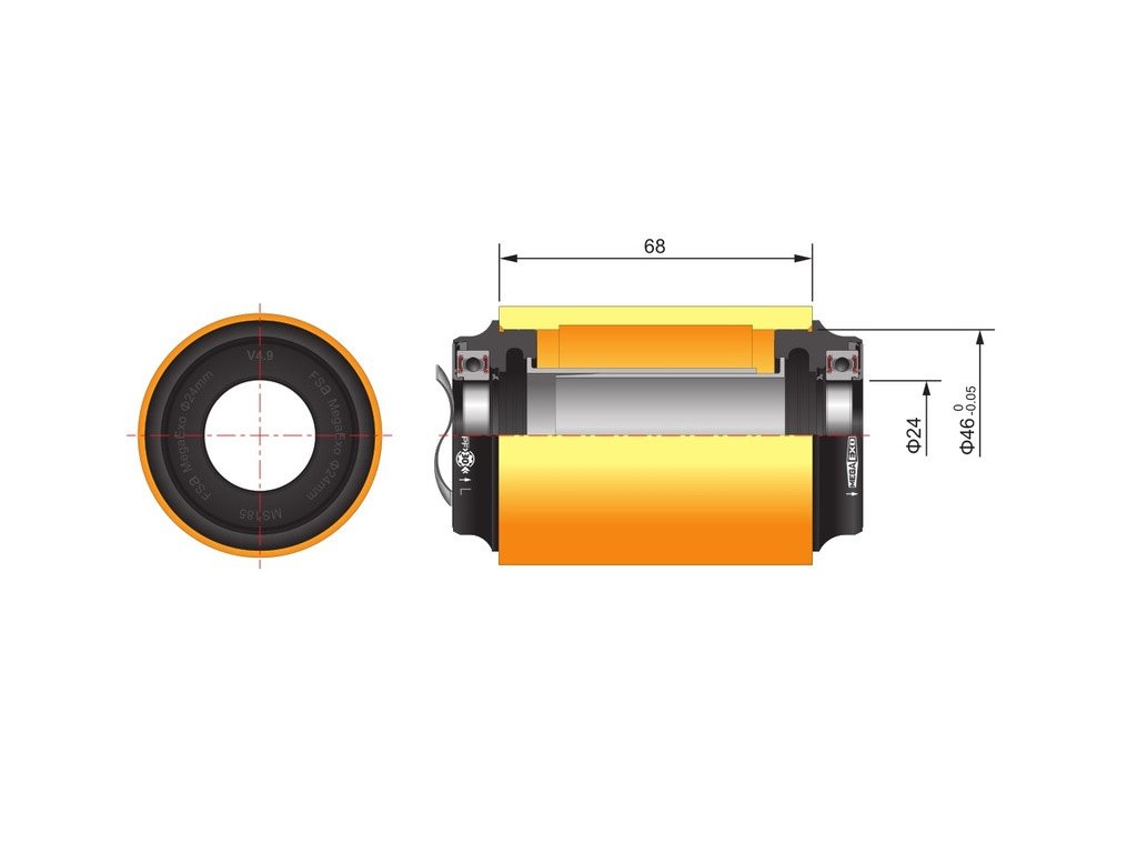 Redukčné stredové zloženie určené pre MTB rámy PF-30 (68x46mm), pomocou ktorého je možné použiť MTB kľuky FSA Afterburner, V-Drive a Comet s integrovanou osou MegaExo 24mm.