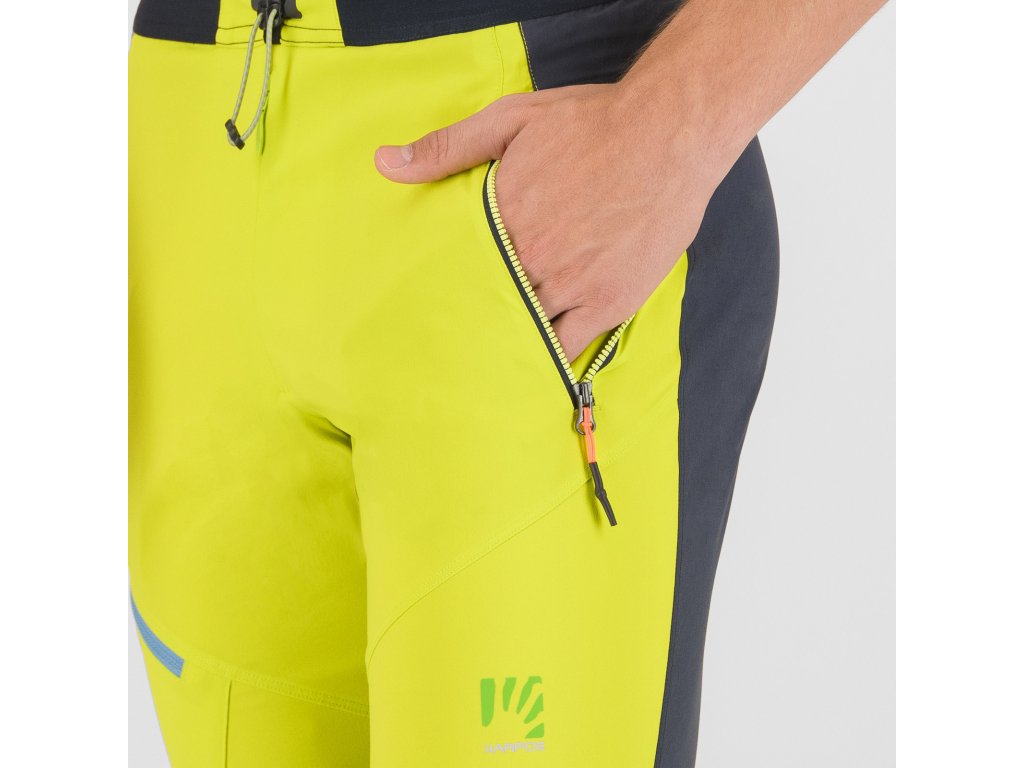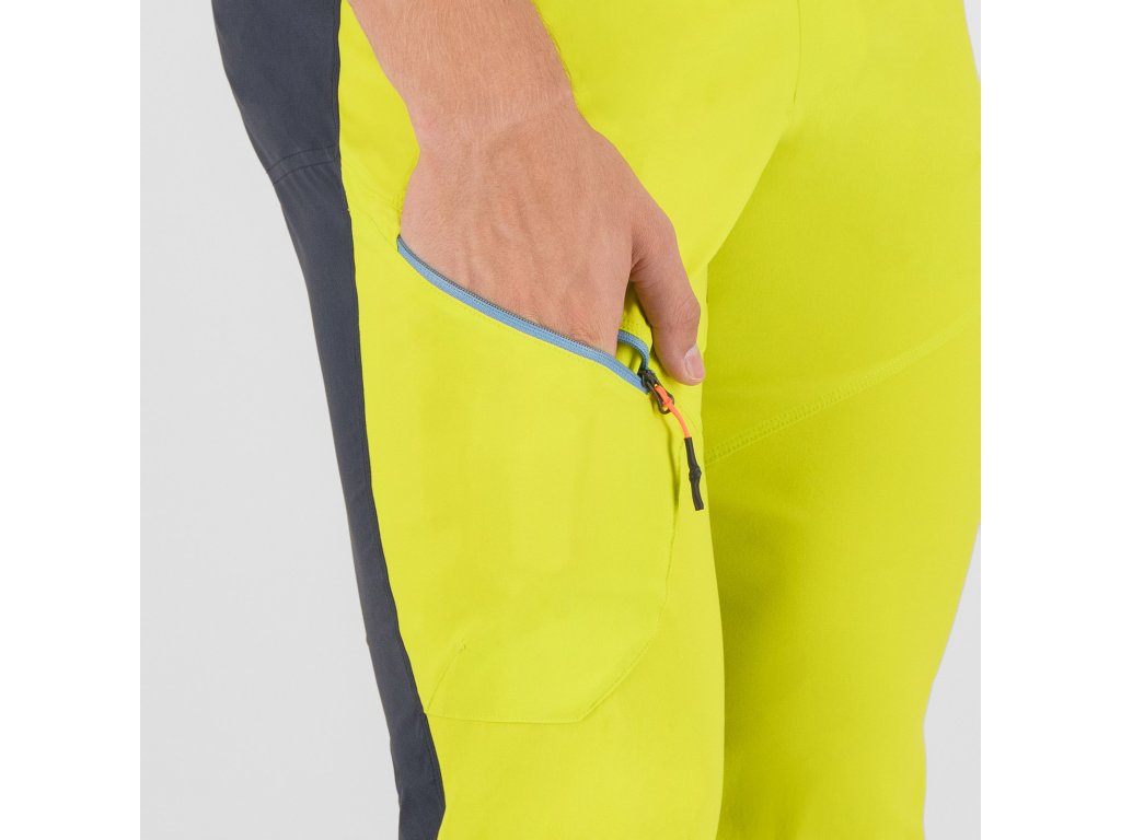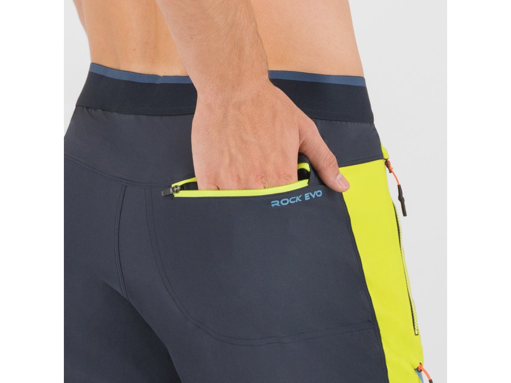 Pánske nohavice Karpos Rock Evo ti poskytnú komfort a voľnosť v pohybe počas akýchkoľvek letných, outdoorových aktivít. Predná strana je vyrobená z príjemného nylonového materiálu, ktorý zabezpečuje ochranu pred UV žiarením UPF40 a vďaka povrchovej úprave DWR ochranu pred vodou a zašpinením. Zadná strana a dolná časť nohavíc sú vyrobené z priedušného obojstranne strečového materiálu, taktiež ošetreného povrchovou úpravou DWR. Na odloženie si osobných vecí slúži až trojica predných a jedno zadné vrecko so zapínanim na zips.
