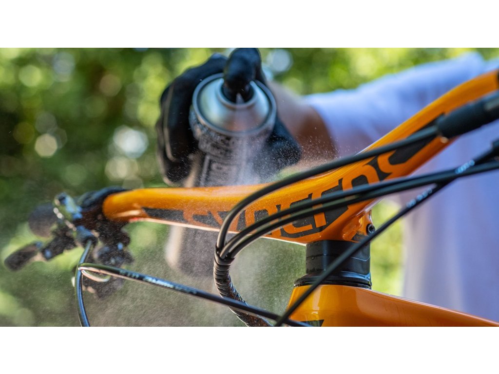 2. (Po vyčistení) aplikujte Bike Protect na celý bicykel – snažte sa vyhnúť akýmkoľvek komponentom odpruženia