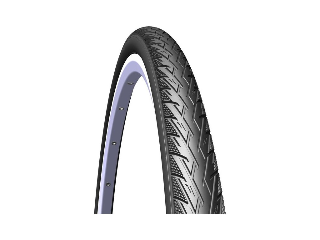 Plášť na mestské a krosové bicykle s reflexným pruhom po oboch stranách.