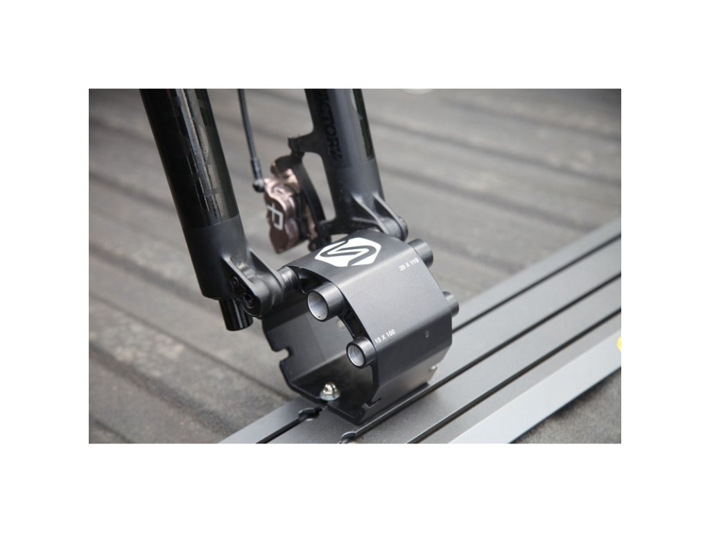 Držiak na uchytenie bicyklov so štandardmi Pevná oska (Thru Axle):15mm x 100mm, 15mm x 110mm, 12mm x 100mm, 20mm x 110mm.