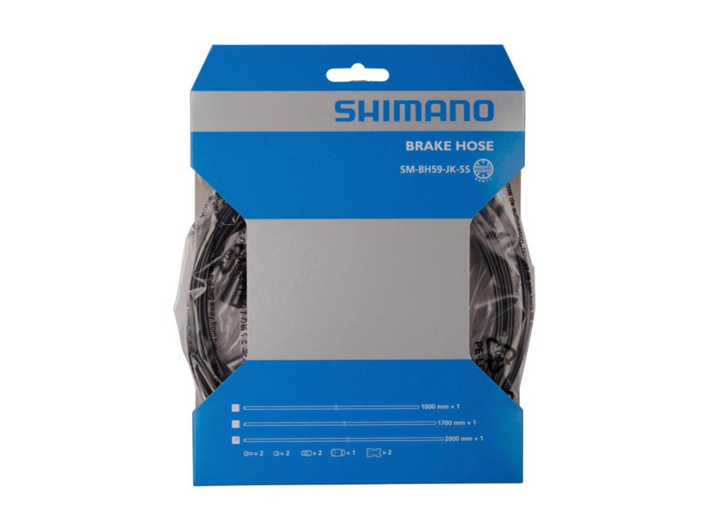 Hadica pre hydraulické kotúčové brzdy. Dĺžka 2000mm. Priama montáž do páky a strmeňa. Balenie obsahuje 2 ks oliva + pin, spojovacie skrutky, 1 ks krytka skrutky, nástroj pre skrátenie hadičky TLBH61.Typ: UNI, Celková váha balenia: 120g, Predné / Zadné, čierna, Balené po: ks, One Way Bleeding, Pre typy bŕzd: M975/775/665/485/396/355/315, Materiál: Plast