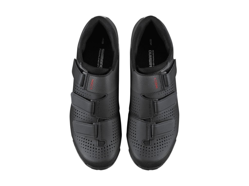 Výkonné XC MTB tretry v kvalite a dizajne SHIMANO. Perforovaný zvršok zo syntetickej kože poskytuje perfektnú priedušnosť. Tri pásky na suchý zips rovnomerne a pohodlne upevnia chodidlo. Ľahká podrážka vystužená sklenými vláknami zabezpečuje výborný záber pri akýchkoľvek podmienkach. XC pretekársky vzor dezénu gumenej vonkajšej podrážky zabezpečuje stabilitu pedálovania a bezpečnú trakciu pri chôdzi. SPD. Hmotnosť: od 668g (č. 42).Dodatočné parametre