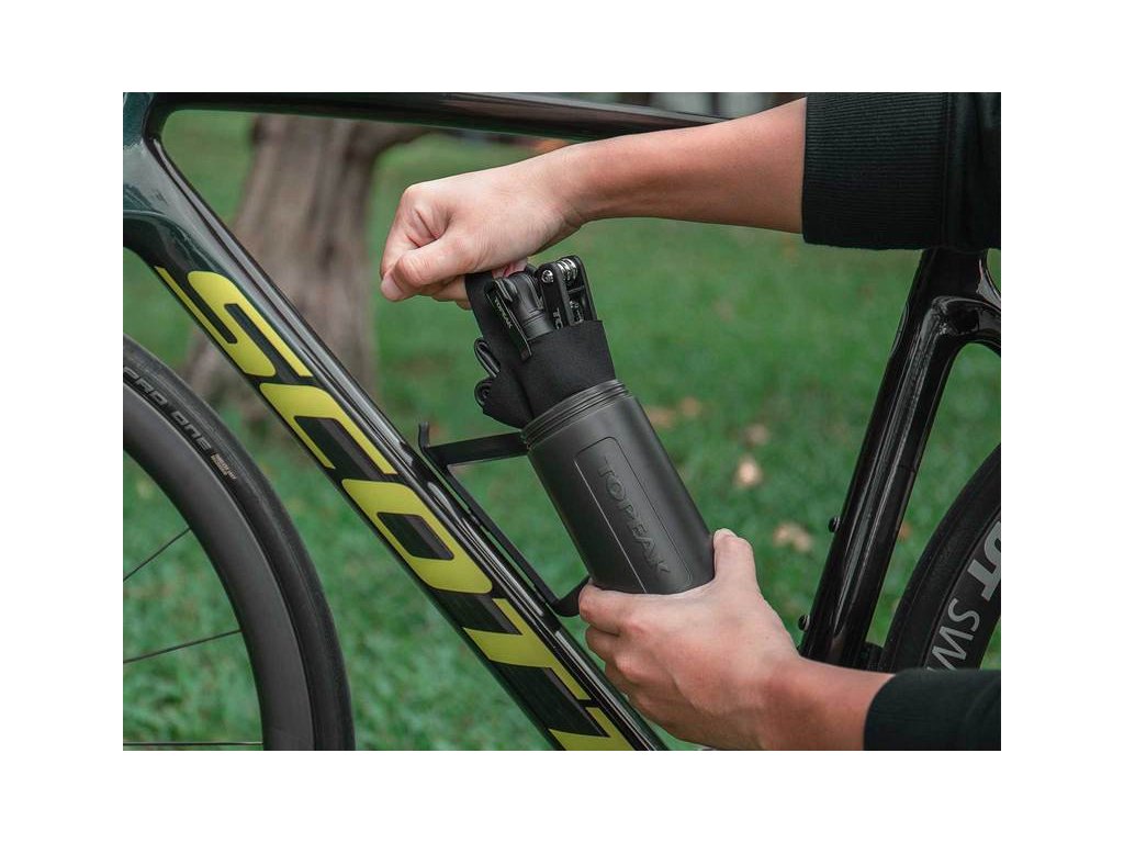 Šikovný kontajner na náradie v podobe cyklofľaše s možnosťou prepravy v klasickom košíku na cyklofľaše. Dokáže pojať multikľúč, CO2 hustilku, montpáky, náhradnú dušu a mini hustilku, prípadne iné potrebné vybavenie pre náročnejšiu cyklistiku