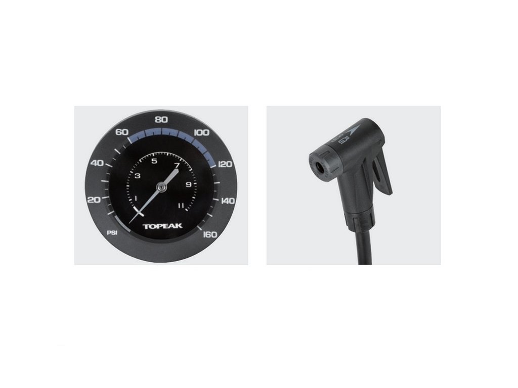 ROAD nožná hustilka s manometrom, vhodná na rýchle hustenie cestných plášťov • optimalizovaný tvar tela hustilky z ocele pre hustenie na vysoký tlak do 160 psi / 11 bar • mohutná základňa pre väčšiu stabilitu z odolného tvrdené