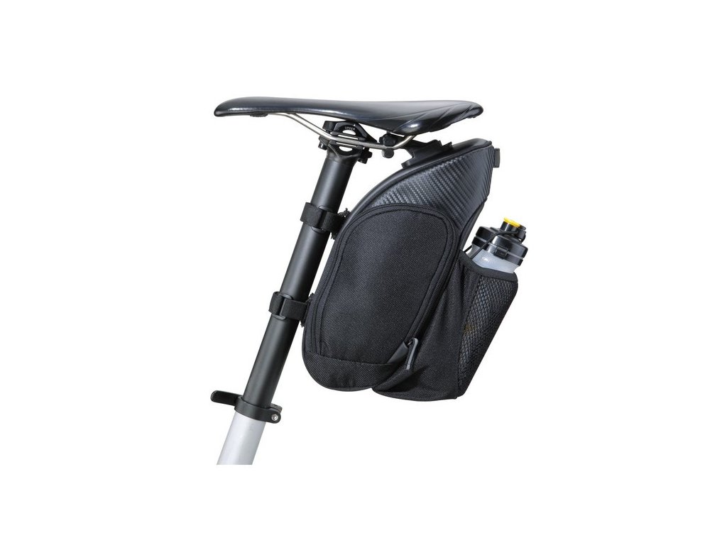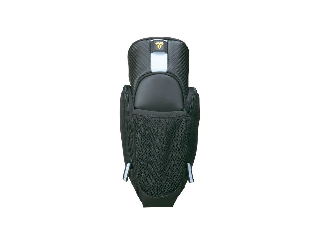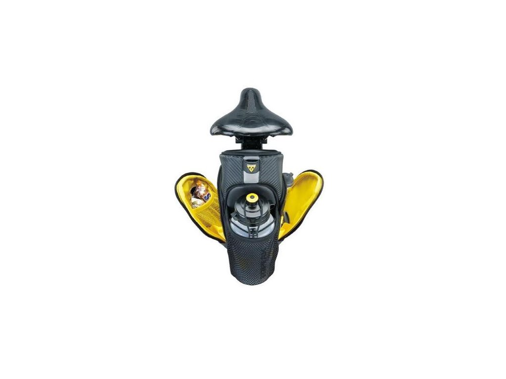 veľkoobjemová podsedlová taška s dvojitým bočným otváraním pre lepší prístup k obsahu • dostatočný objem na prepravu vetrovky, duší, jedla alebo náradia • samostatné zadné vonkajšie vrecko na cyklistickú fľašu • QuickClick rýchloupína
