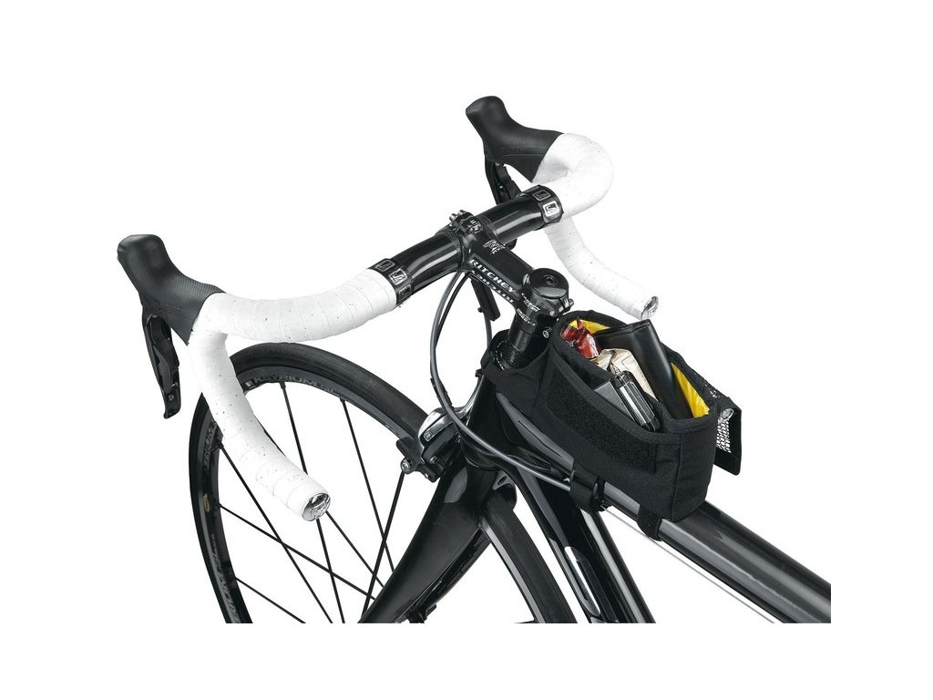 Praktická úzka taška na hornú rámovú rúrku vo veľkosti L, ktorá umožňuje prepravovať osobné veci (smartfón do veľkosti 6' (uhlopriečka displeja), PDA, energetické tyčínky, peňaženka, náradie,...) a mať ich počas jazdy poruke • hlavný úložný